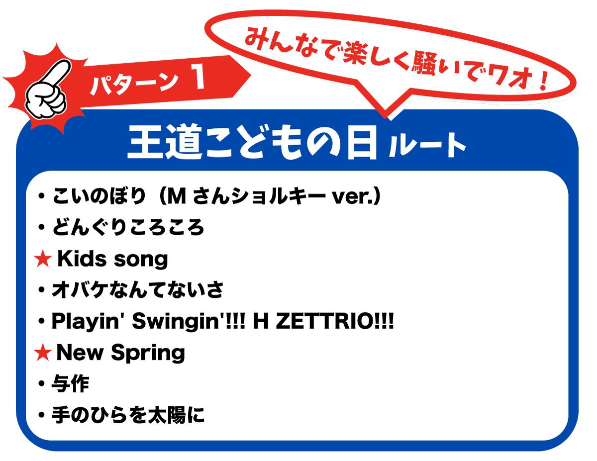 ★Kids song [ゆったり / ROCK / JAZZY] ★New Springの途中ソロ[暴れて!走りまわって!/ ゆっくりしちゃって!寝転がって!/ 3人で円陣組んで!!]
