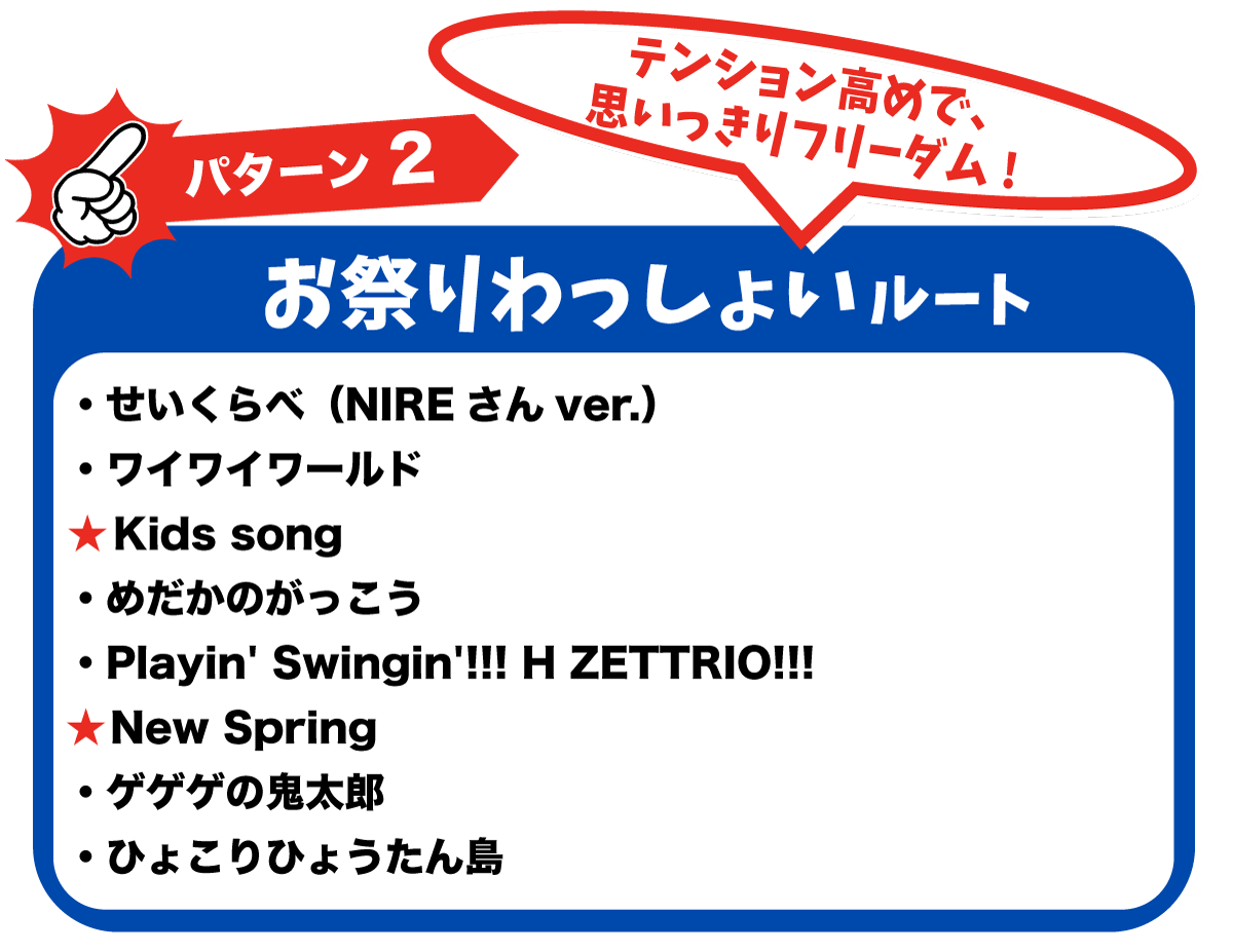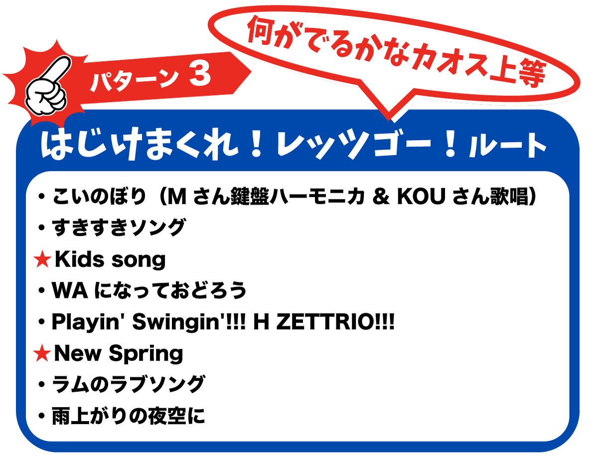 ★の2曲は3択からお選びいただきます。